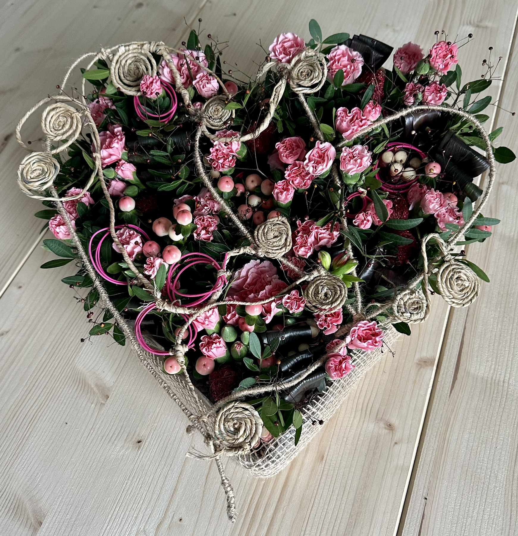 Omdat we werken met natuurlijke materialen, eigen creativiteit en de beschikbaarheid van het moment, kan het bloemrijke hart afwijken van de getoonde afbeelding. Dit maakt elk hart uniek.