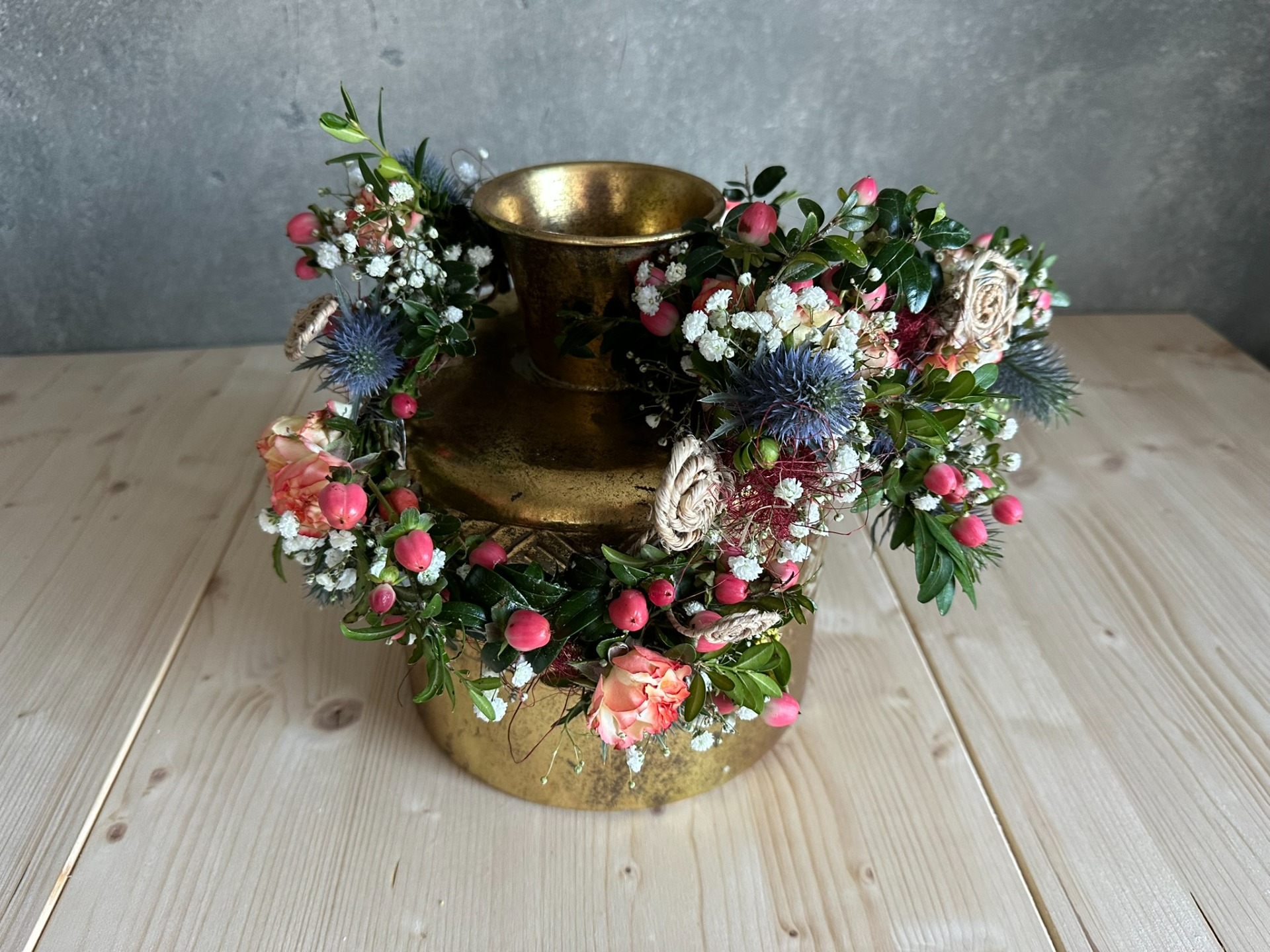 *Omdat we werken met natuurlijke materialen en afhankelijk zijn van beschikbaarheid, kan het resultaat afwijken van de afbeelding. Dit maakt elk bloemwerk uniek, afgestemd op het seizoen en jouw creativiteit!